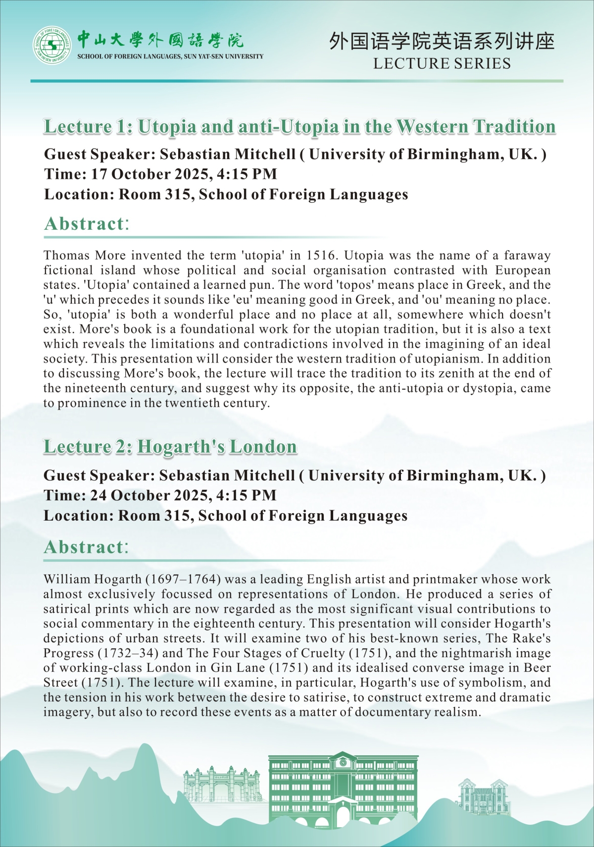 色情导航 英语系列讲座:Utopia and anti-Utopia in the Western Tradition;Hogarth’s London